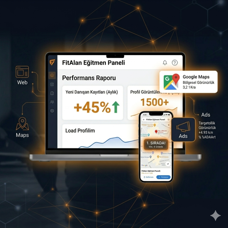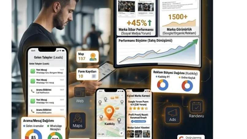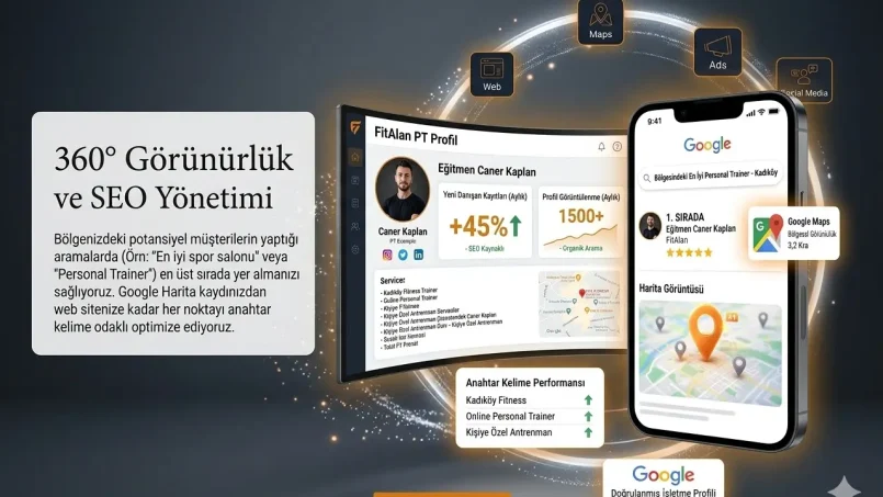 Profilinizin Google arama sonuçlarından profesyonel website tasarımına, yüksek dönüşümlü Meta reklamlarından kişisel SEO optimizasyonuna kadar tüm dijital süreçlerinizi biz yönetiyoruz. Siz sadece antrenmanlarınıza ve danışanlarınıza odaklanın.